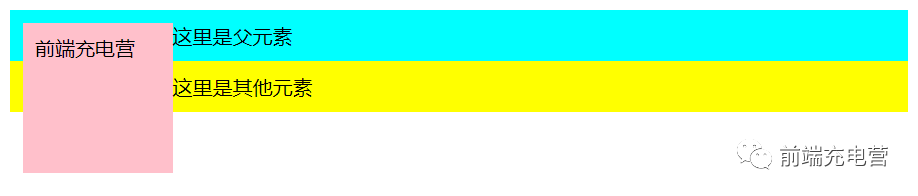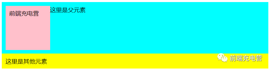 <body> <div class="main"> 这里是父元素 <div class="inside">前端充电营</div> </div> <div class="other">这里是其他元素</div></body>