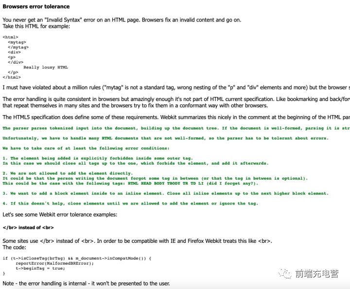 文章主要是讲浏览器的渲染机制的,其中有提到如果有错误的嵌套标签,不同浏览器会如何如何处理,有兴趣的同学可以去看一下。