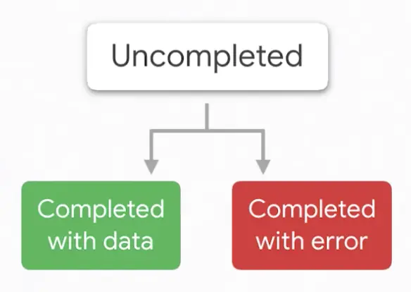 绝大部分情况下,我们无非都是围绕着这三种状态进行一些处理。当我们接收一个Future时,我们会一直等到我们打开礼盒,然后我们才会决定如何处理,比如说可以正常接收到值时,我们应该如何处理,又或者说,当发生错误的时候我们又要怎么做。我们可以经常看到1-2-3这样的过程:
