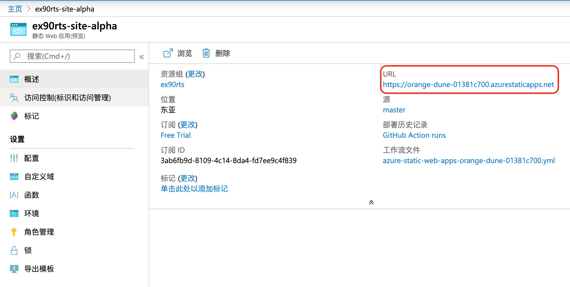后面 3 个步骤基本不用填写或修改,直接下一步,到第 4 步点击前面的蓝色“创建”按钮即可完成,提示完成后点击“打开资源”进入以下界面,点击 URL 即可进入访问: