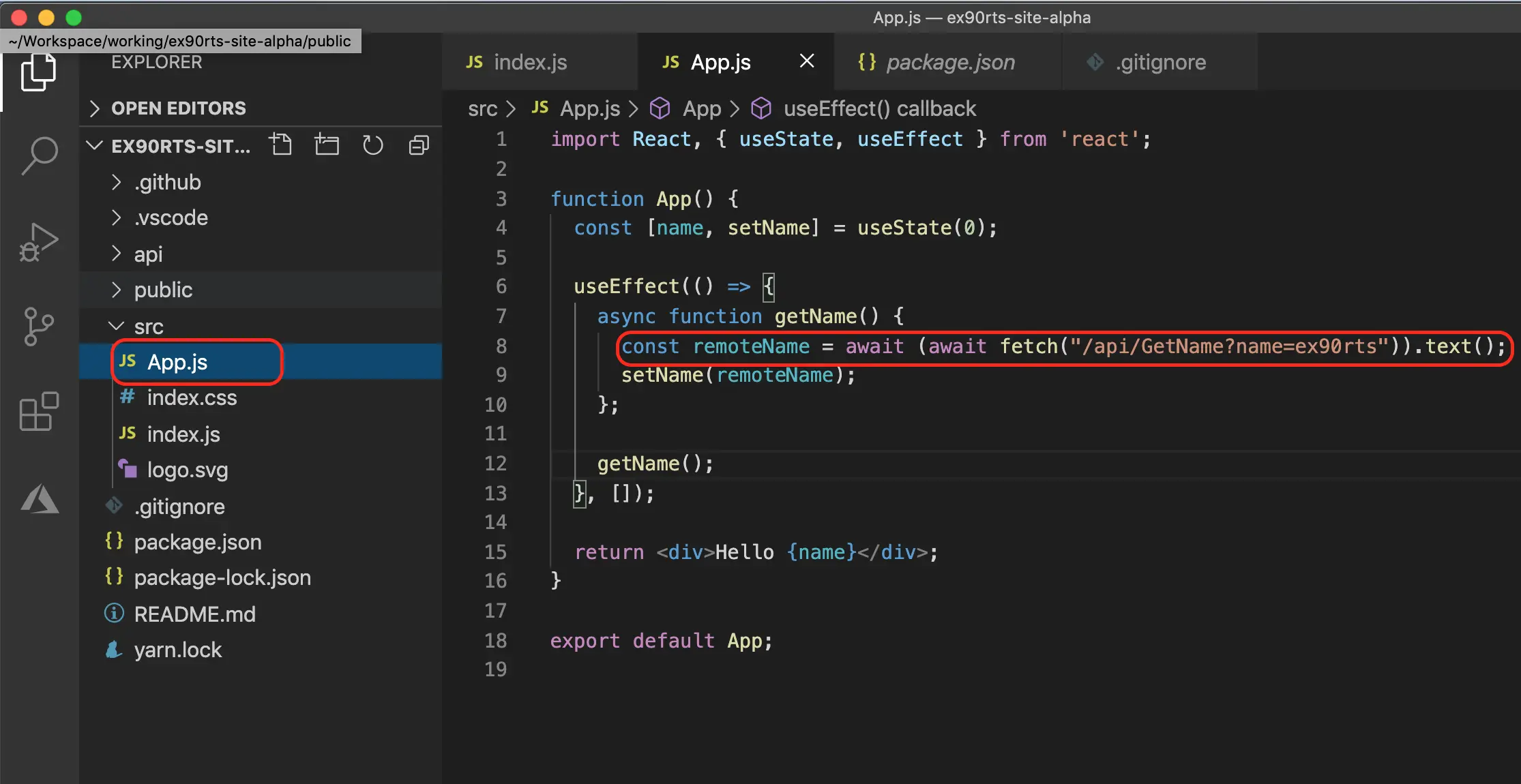 下面我们更新一下静态页面,在静态页面中调用一下上述 API 试试,修改 scr/App.js 内容如下: