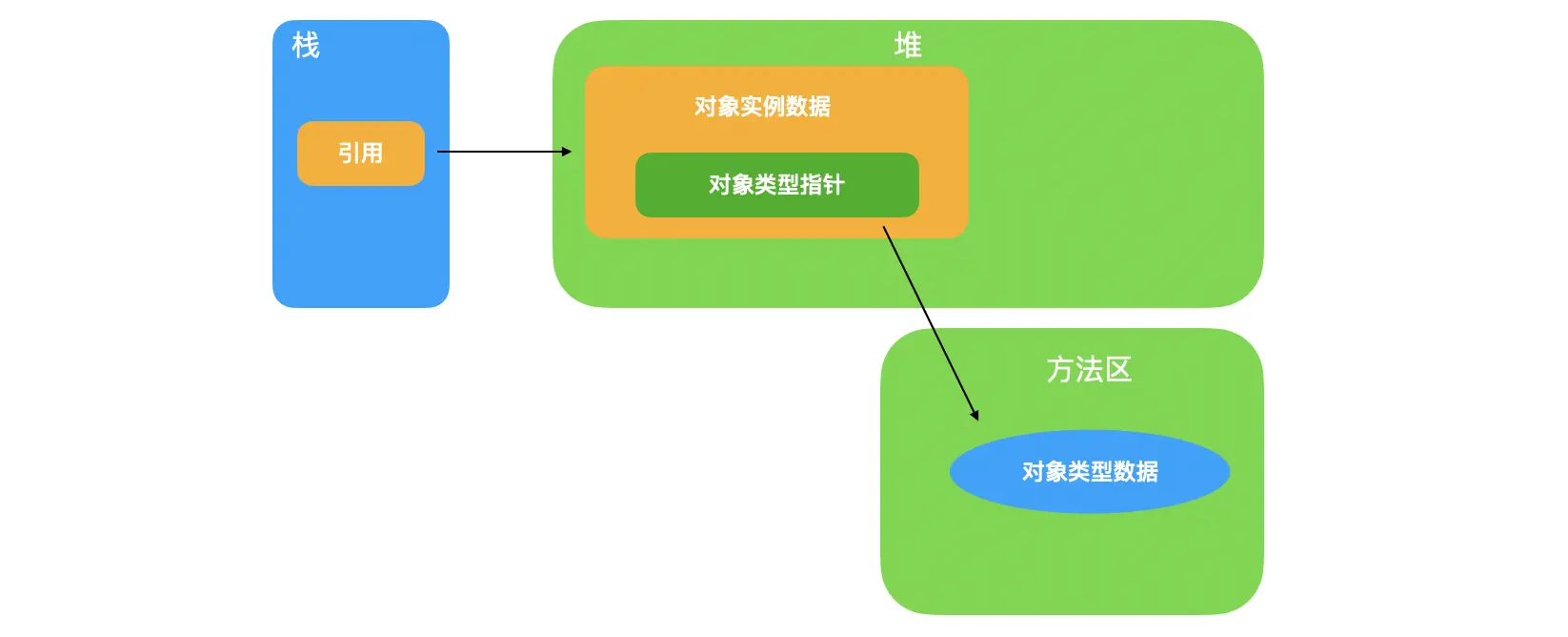 程序中创建的大多数对象都在堆中分配内存,然后栈中的变量通过引用来指向堆中的对象,所以堆是各个线程共享的一块内存区域。方法区中则存储 Java 的类型信息、常量、静态变量等等(常量,静态变量也有可能会引用对象)。
