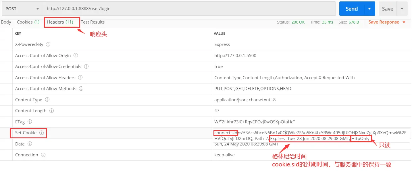 - 在服务器把信息返回给客户端的时候,会把SID基于响应头Set-Cookie传递给客户端。