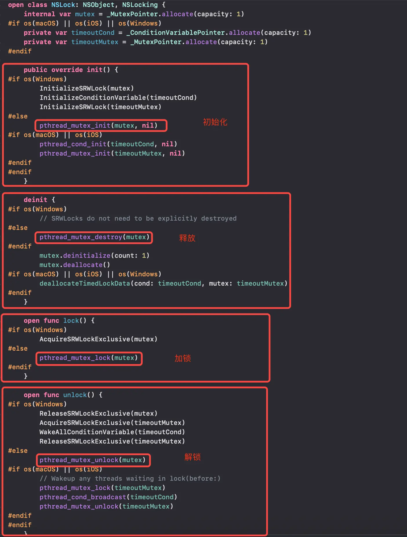 等等,前面不是刚说OSSpinLock因为安全问题被废弃了吗,但是苹果源码怎么还在使用呢?其实点进去就会发现用os_unfair_lock替代了OSSpinLock(iOS10之后替换)