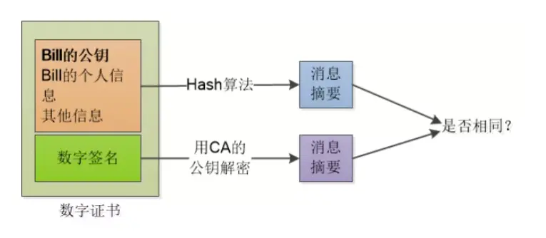 服务端将数字证书传递给客户端,客户端验证消息是否被篡改的过程: