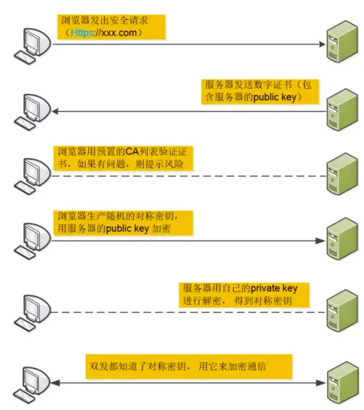 - 使用非对称加密,需要传输公钥。 存在问题: 1. 公钥被拦截;2.加密速度太慢