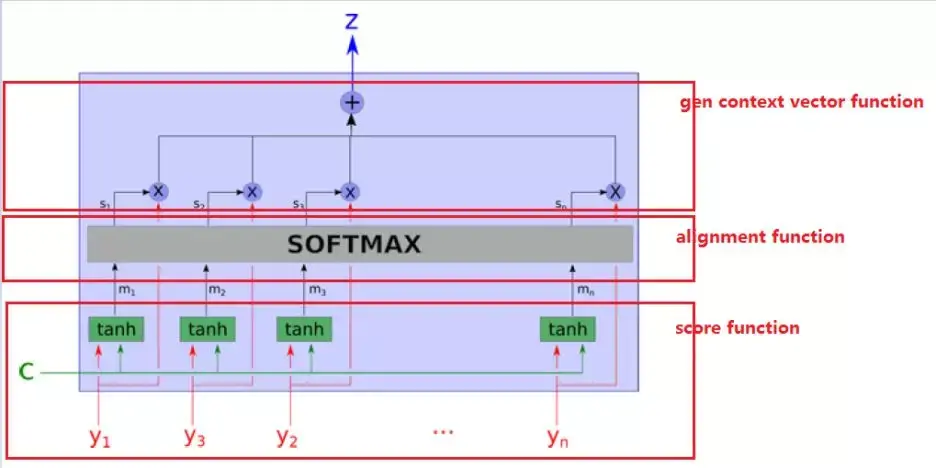 通常听到的一些 attention,他们的差异其实主要体现在 score-function 层面,其次是体现在 generate context vector function 的层面。