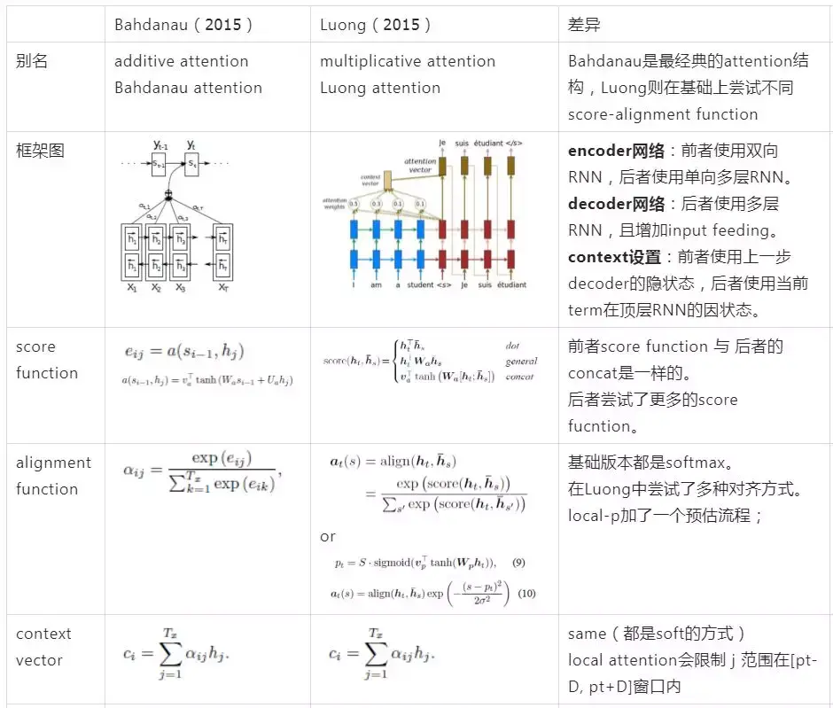 2015年 EMNLP 《Effective Approaches to Attention-based Neural Machine Translation》在基础 attention 上开始研究一些变化操作,尝试不同的 score-function,不同的 alignment-function。文章中使用的 Attention(multiplicative attention 或者 又叫 Luong attention)结构也被广泛应用。