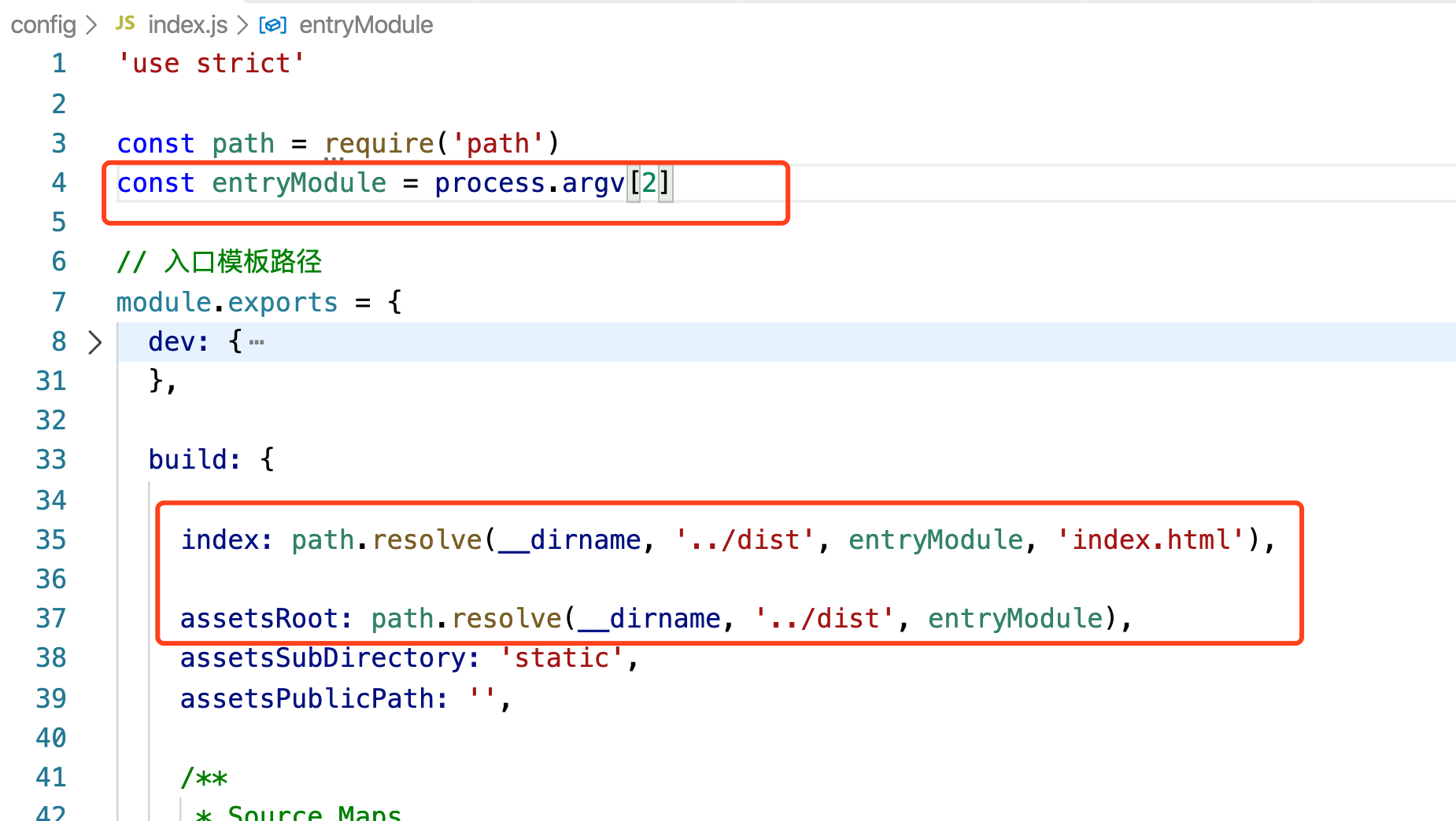 接下来就是获取这个启动参数,process.env.npm_config_entryname就是用它来获取,当然你也可以不用entryname,这个名字根据需要自己定义,感兴趣的童鞋可以去了解下node的process,这里不做介绍,