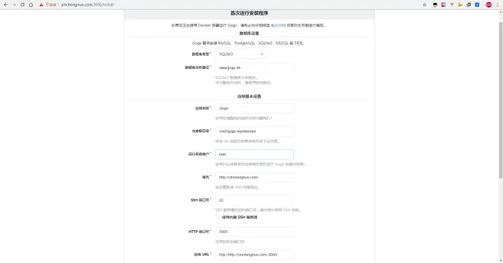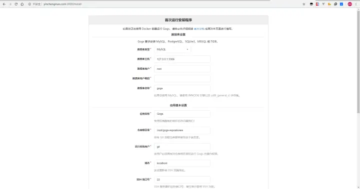 ./gogs/gogs web这时,访问服务器的 3000 端口,就会看到下面的页面。