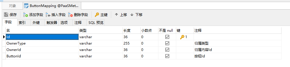 其实Button的功能就比较容易描述了,首先他需要有一个唯一的编码,然后他需要设置展示的内容,然后需要定义他的参数(字符串描述就可以,至于怎么执行再说),然后他会出现在哪个页面上(列表行、列表头、详情页都可能会出现按钮)。