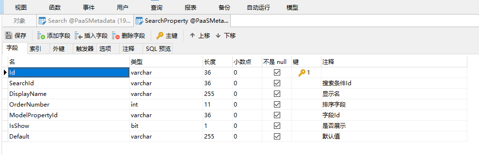 首先从定义User这个Model开始,要定义一个Model,必然首先要有一个表来存储这个Model的相关数据,所以我们现在数据库中定义Model表,大概是这个样子