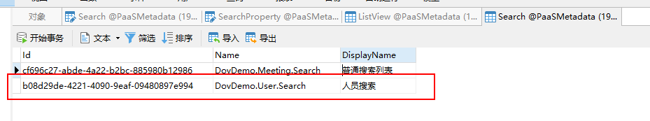 这个表里边定义了应该展示成啥名,然后使用哪个List定义展示列表本体,使用哪个搜索来展示搜索内容。