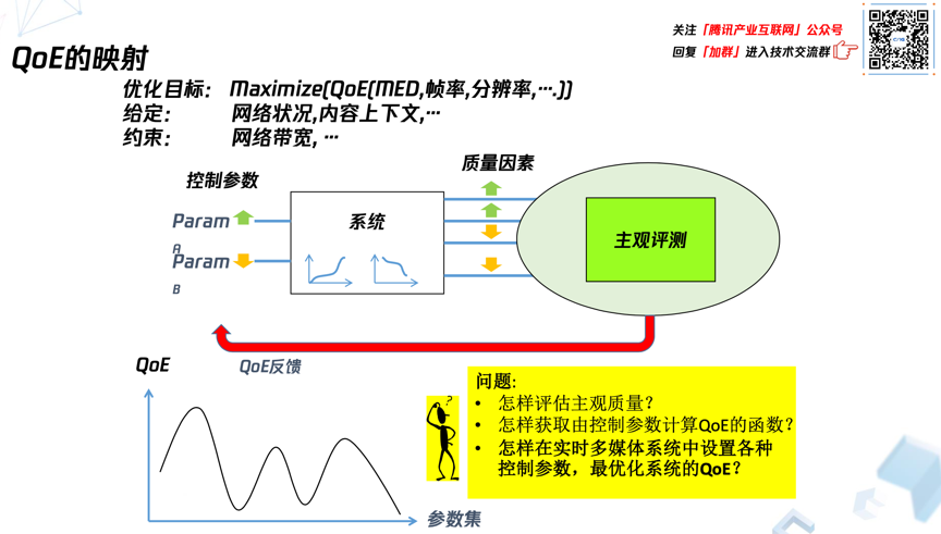 这里其实涉及三个问题,这三个问题都不太简单: 怎么评估、怎么获得QoE; 第二,QoE在实时系统上到底应该怎么算; 第三,给定了算式后,应该怎样做最优化。 下面重点介绍一下第三个问题。