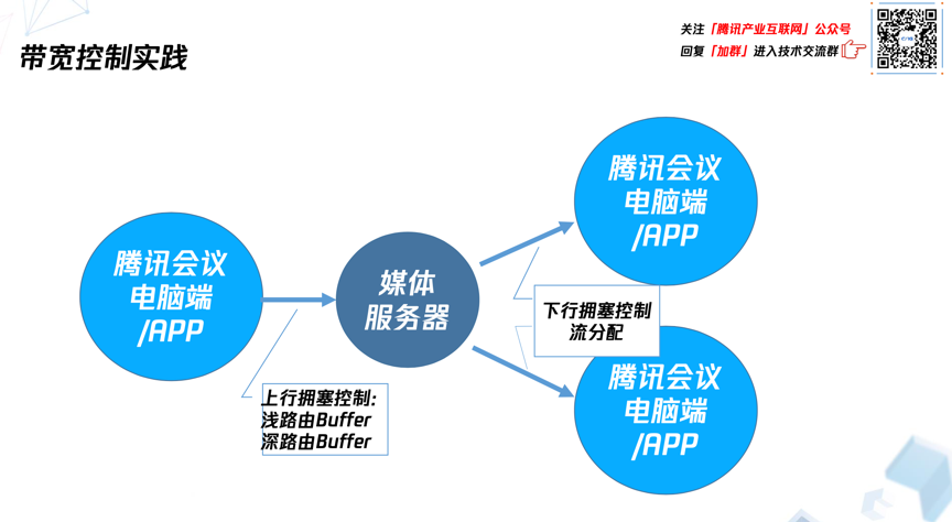 在做这个时延优化的实践里,我们发现还有很多需要考虑的地方。比如说媒体服务器不是一个点,它们之间传输需要时间,而且它们可能也不是百分之百可靠。另一方面就是因为腾讯会议做的是一个全平台的方案,可能遇到有一些平台,它的处理比较弱,在视频路数比较多的时候,很容易处理不过来,造成延时约束被打破。在这些地方腾讯会议都投入了很多精力来做微调的优化。