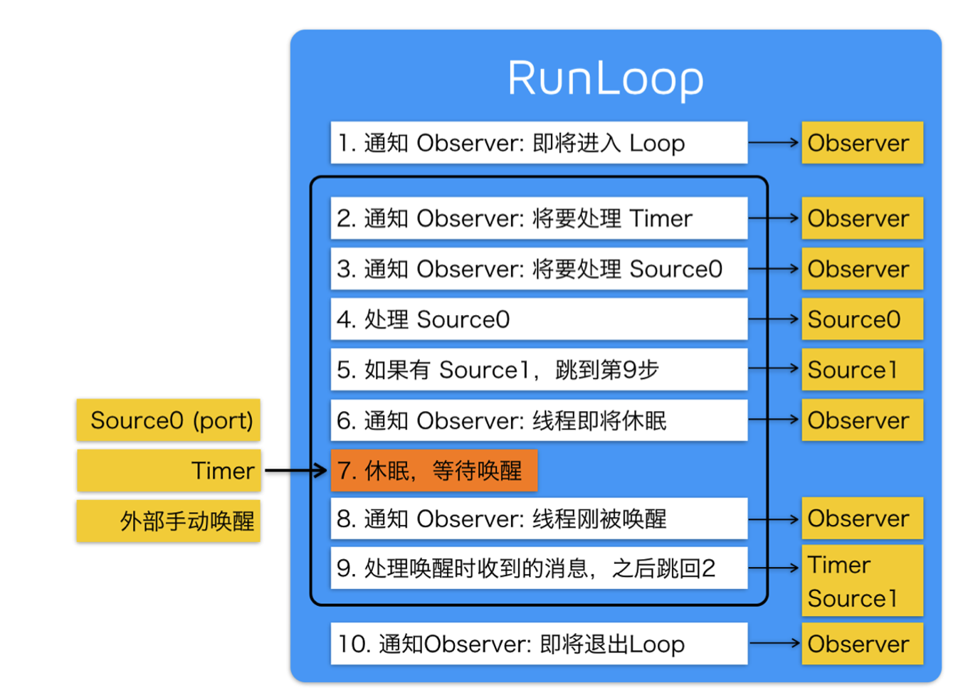 kCFRunLoopAfterWaiting = (1UL << 6), // 刚从休眠中唤醒