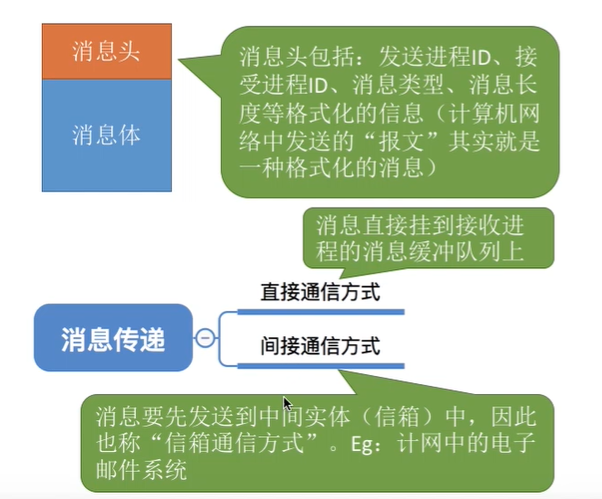 3、消息传递 俩进程间以格式化消息为单位。操作系统提供“发送消息/接收消息”原语。