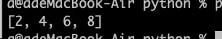 另外列表生成式还支持筛选,比如我们1到9之间的所有偶数