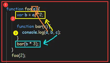 - 包含着foo所创建的作用域,有b、a、bar标识符
