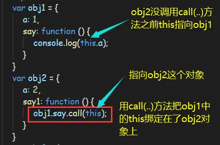 call(..)、apply(..)和bind(...)绑定方法都是一样的,第一个参数是一个对象,后面都是传参数,只是两者传参数的方式不一样,这里不深入讨论。