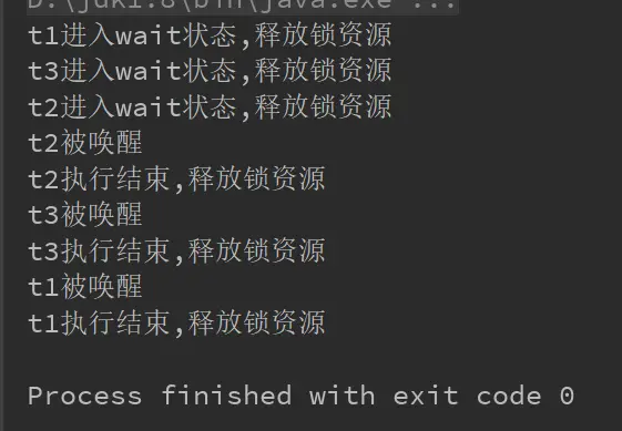 // 此时线程t1、t2、t3 都处于wait状态