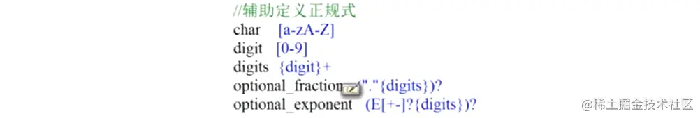 辅助定义。就是给已有的正规式起个名字,以后可以直接用这个名字指代。