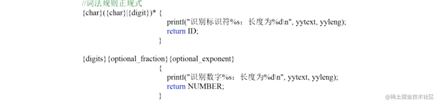 - 模式(Pattern): 产生和识别元素的规则,就是定义的词法规则;
