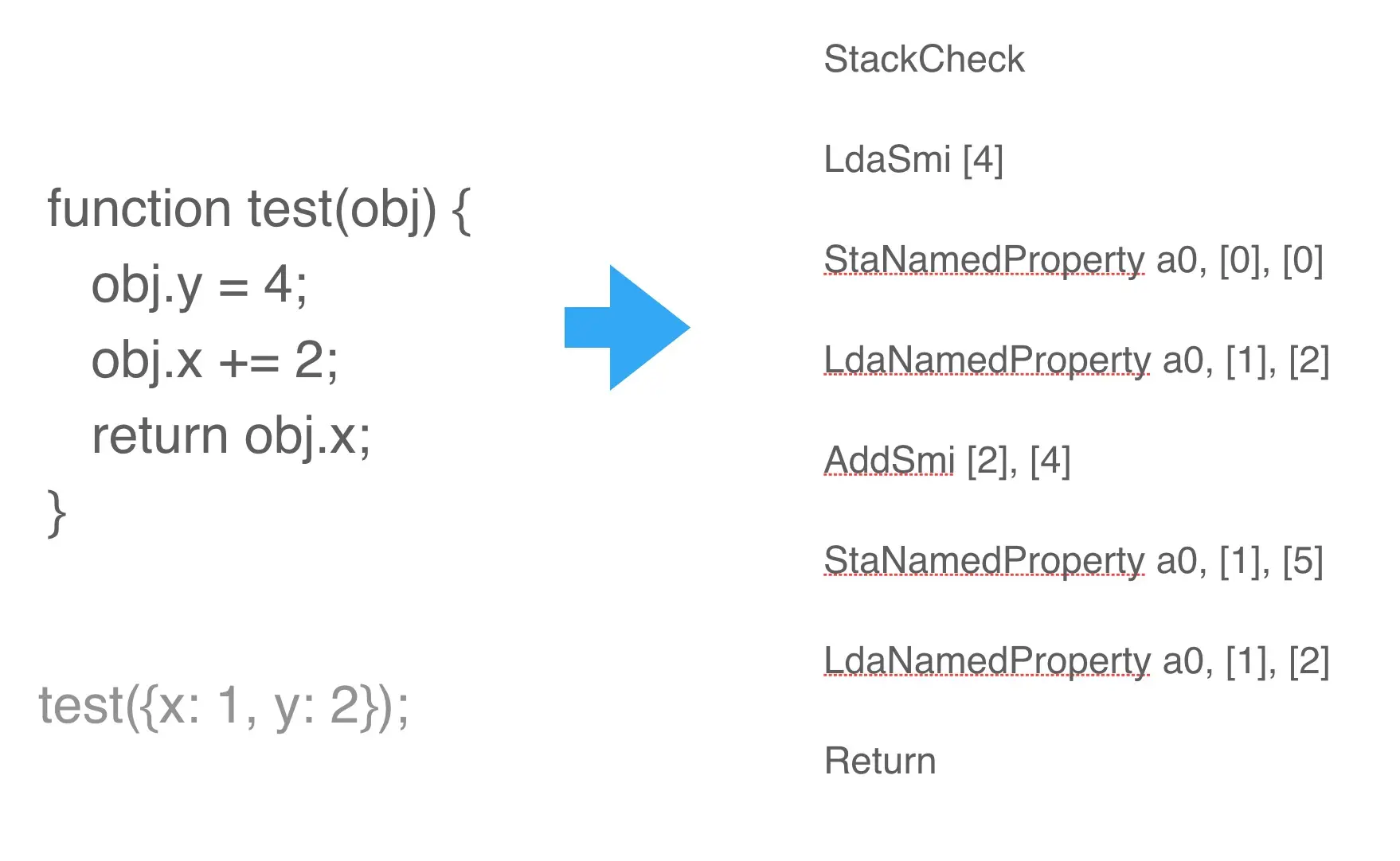 我们可以通过分析一段字节码的运行来看一下内联缓存的运作,如果不了解字节码执行的同学可以先看V8引擎详解(四)——字节码是如何执行的 先来了解一下。