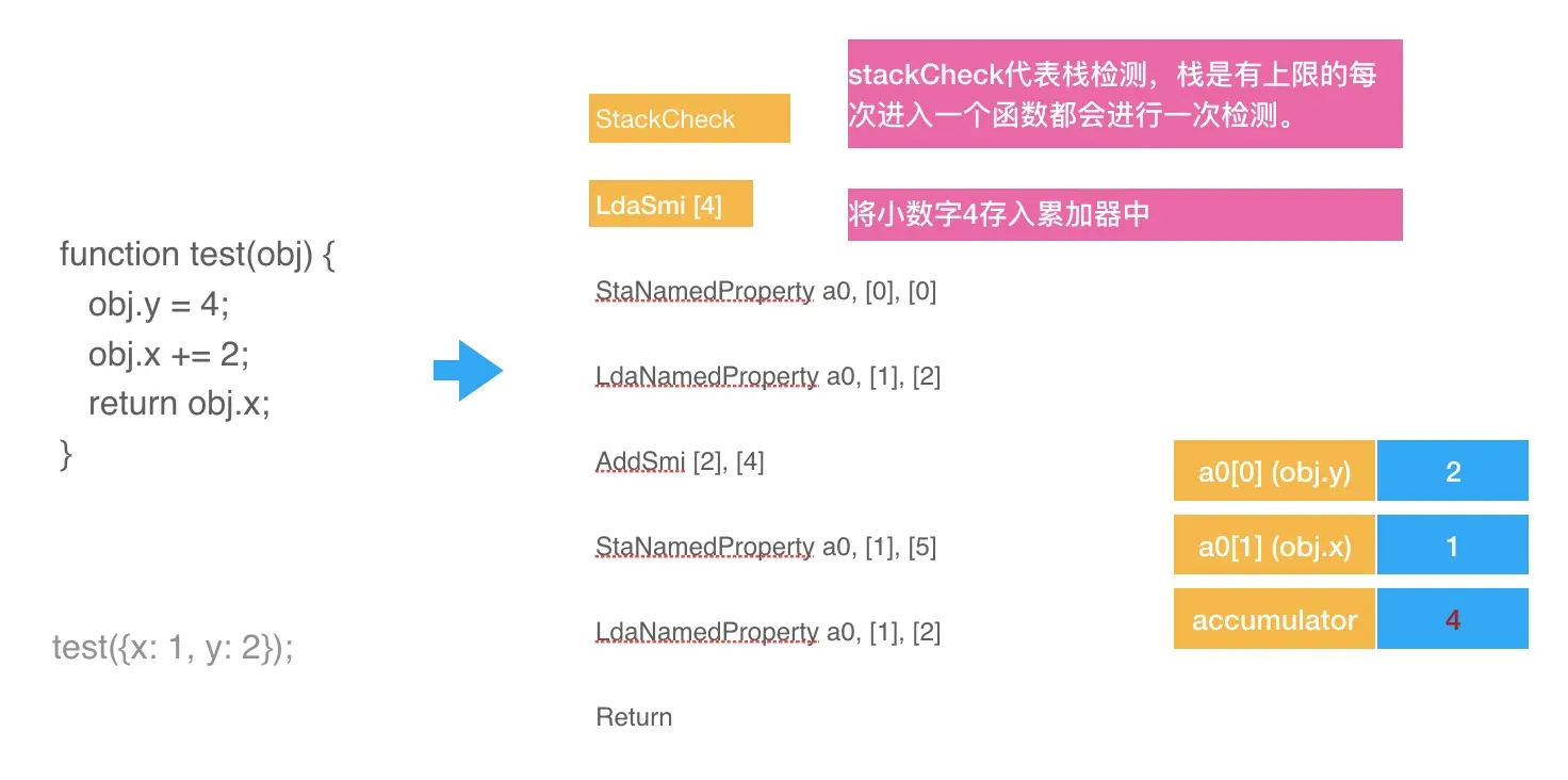 最后当我们将obj.x中的值直接通过缓存取出到累加器中并将累加器中的值返回。