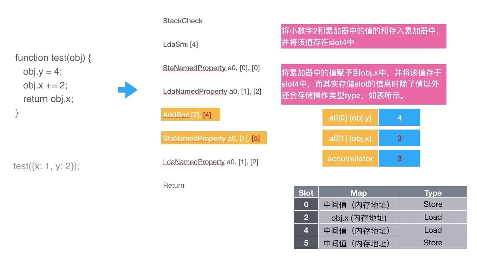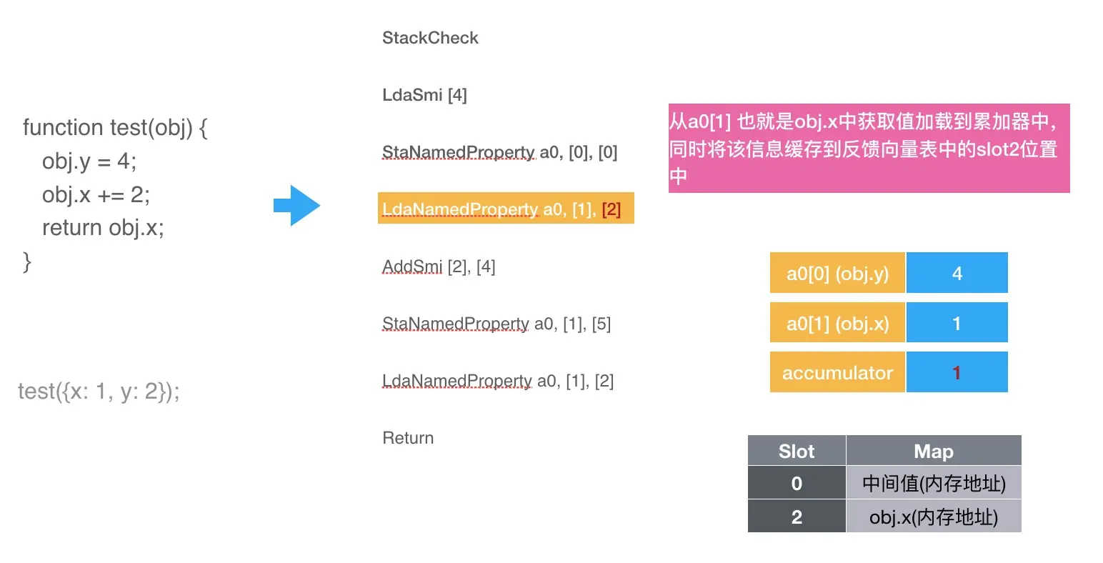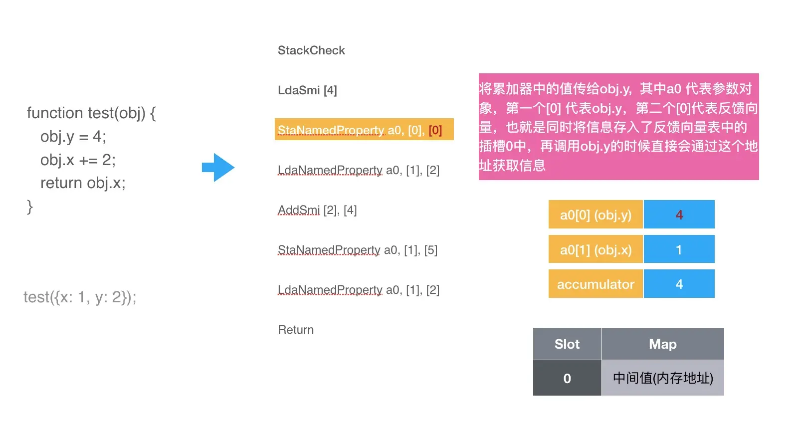 将累加器的值传给 a0[0] (obj.y), 同时将 **a0[0] (obj.y)**的信息缓存到 反馈向量 表中的第0个 slot(插槽)中。