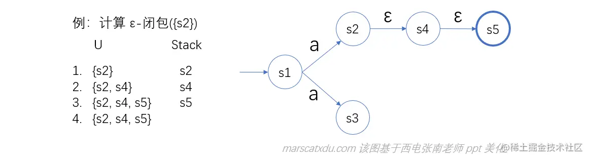 所有经过 ε 跳转后抵达的状态都是结果集中的一个元素。
