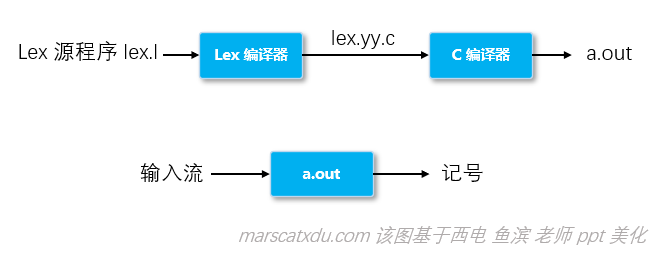 实际应用中,我们使用工具来生成词法分析器。因为从正规式到词法分析器这个过程中的每一步都有对应的算法来实现。我们构造自己的词法分析器,只需要使用 Lex 就可以了。