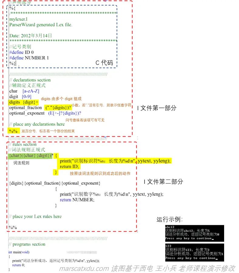 对于词法解析错误的输入,lex 编译出的程序将会直接把错误的输入回显
