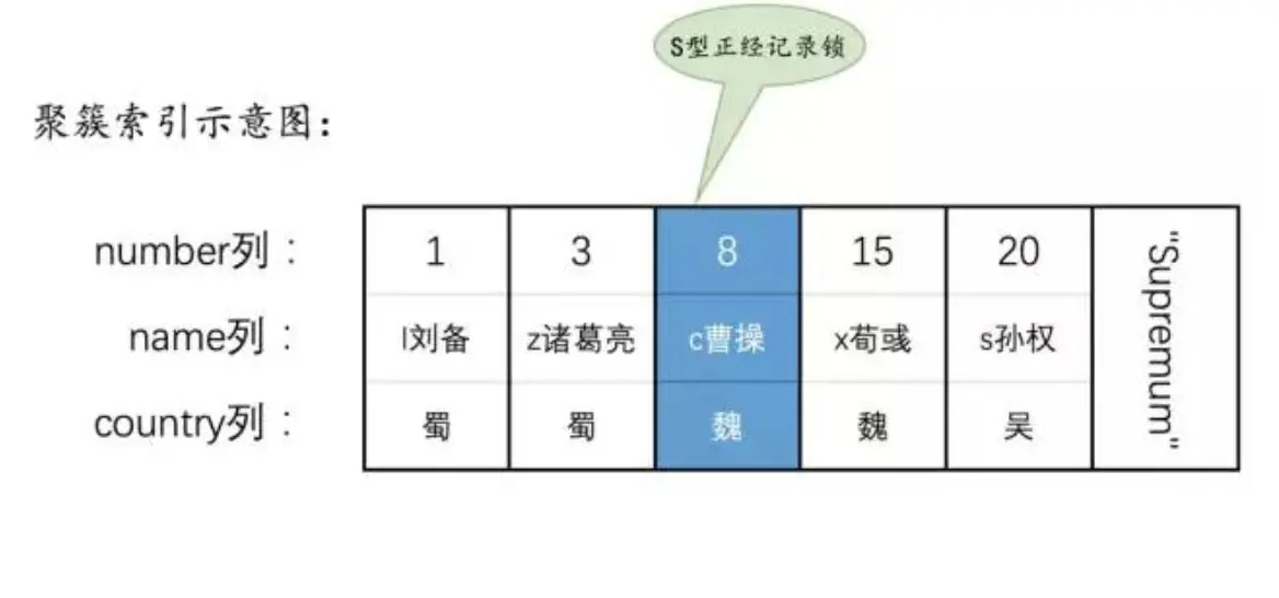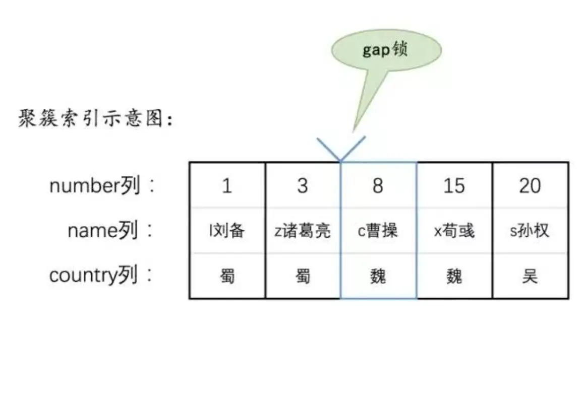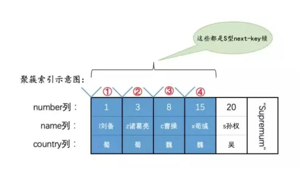 因为country这个列没有加上索引,所以会进行全表扫描,存储引擎没扫描到一个数据都会为这个记录建立起来S型的next-key Lock锁,并且把这个数据返回给Server层,由server层判断,如果不符合就释放锁(在可重复读隔离级别下不会释放锁,所以聚集索引全部记录都会被加锁,并且在事务提交前不会被释放)