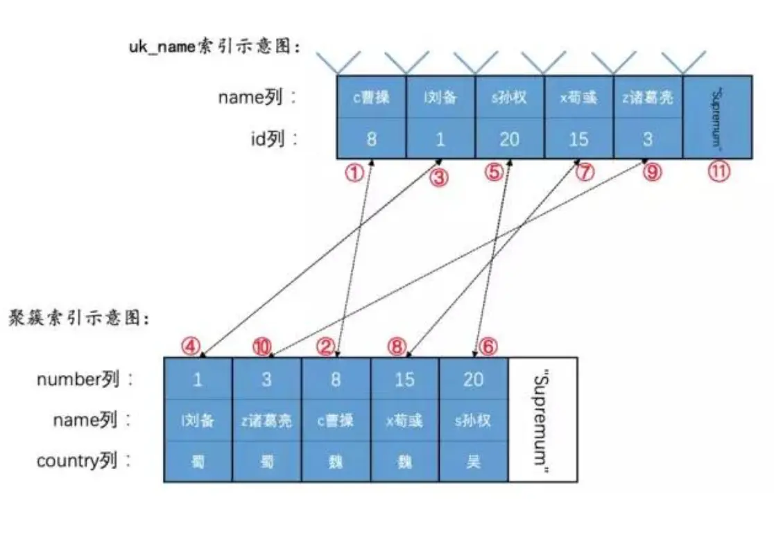numbers是主建,name是二级索引