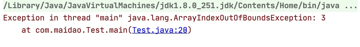 行后,将会抛出ArrayIndexOutOfBoundsException数组越界异常。在开发中数组的越界异常是不能出现的`,一
