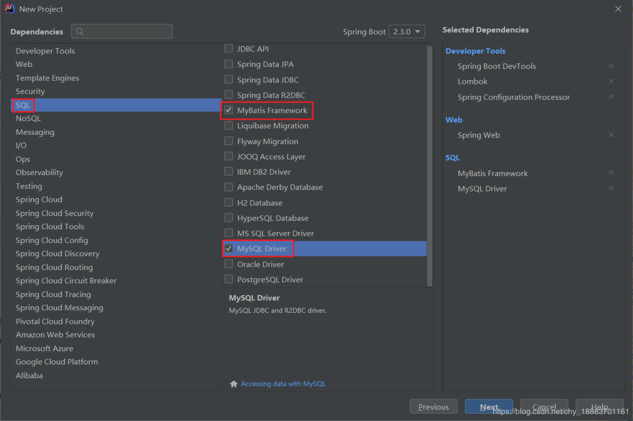 1、创建项目时勾选mybatis、数据库驱动。