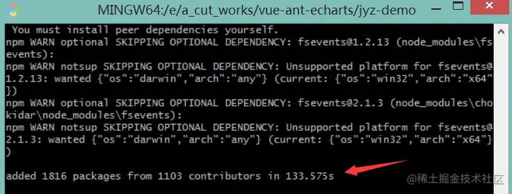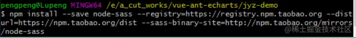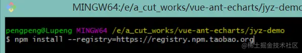 git base here,输入命令行npm install echarts -save --registry=https://registry.npm.taobao.org