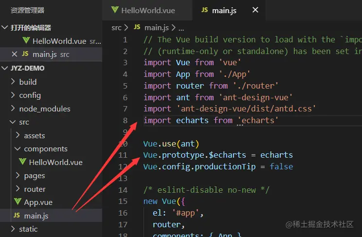 暂时全局引入echart,后面优化我会教你封装echart和按需引入,暂时为了争取时间,暂时全局引入
