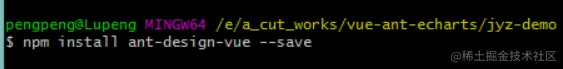 git base here,输入命令行npm install ant-design-vue --save --registry=https://registry.npm.taobao.org