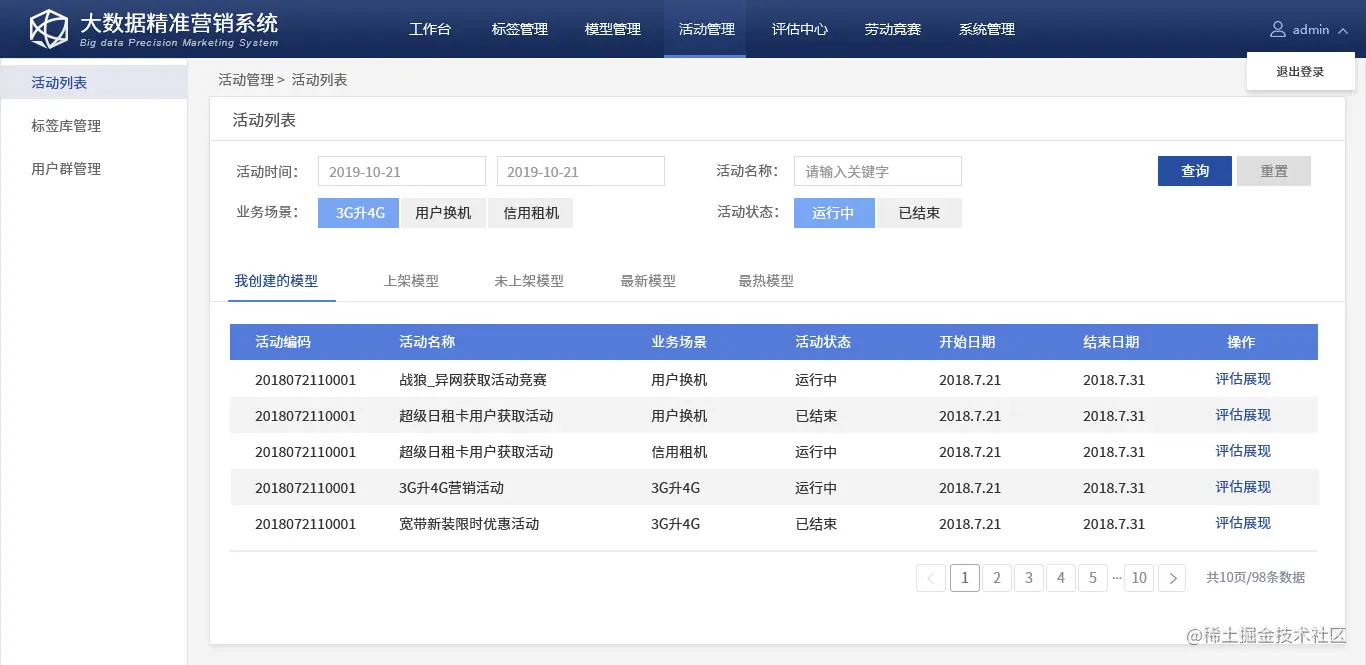 1. 点击“活动管理”切换到活动管理模块中的活动列表模块