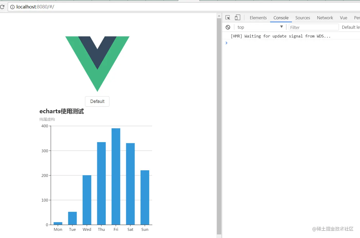 测试echart是否引入成功 请复制以下内容覆盖到原来的helloWorld.vue保存后查看8080端口