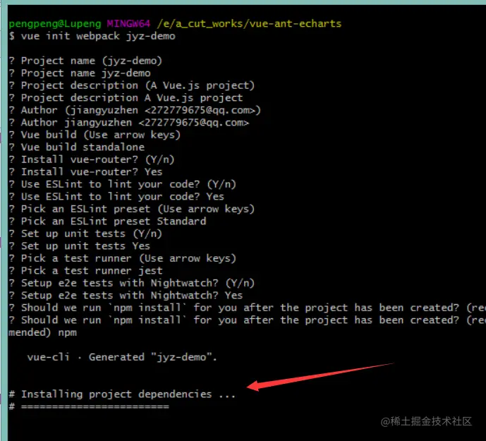 vue init webpack jyz-demo其中jyz-demo是项目名称