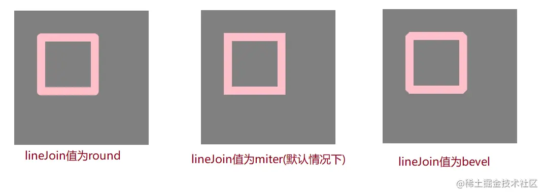设定线条与线条间接合处的样式(默认是miter),与填充没有关系 都有哪些值,含义是什么