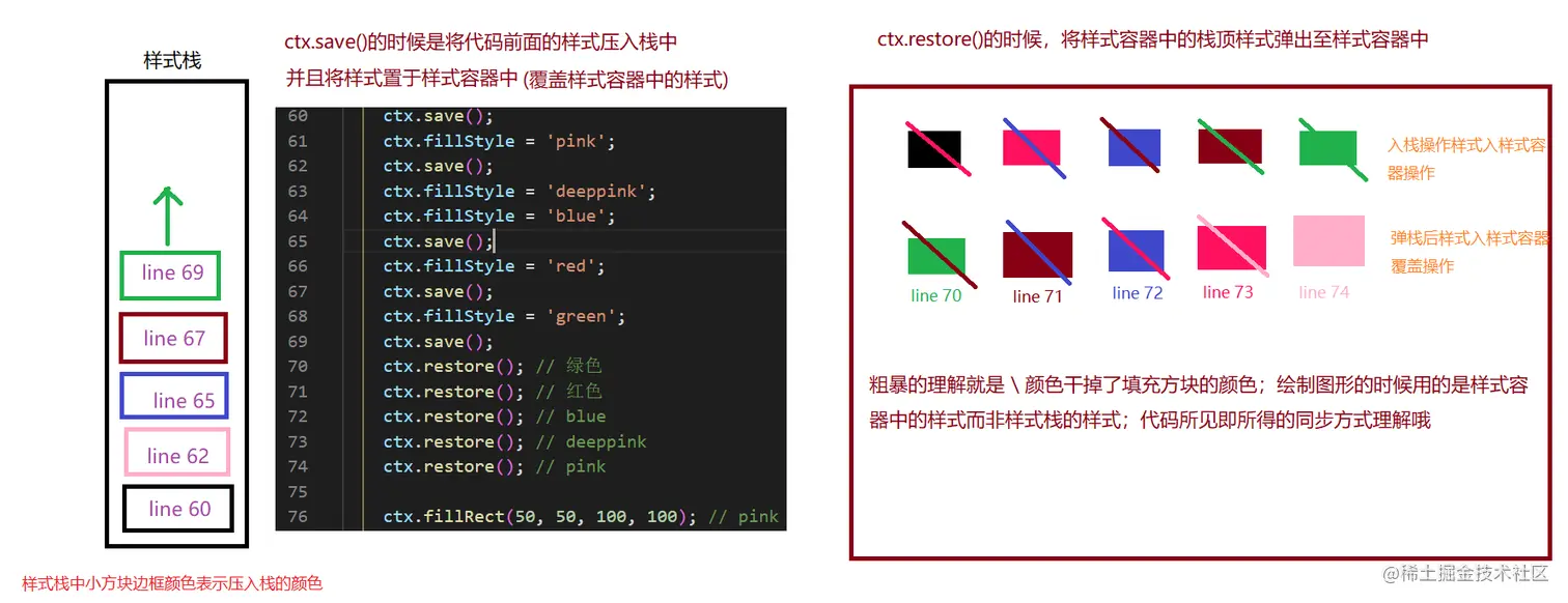 x,y指定了在canvas画布上所绘制的左上角(相对于原点)的坐标。