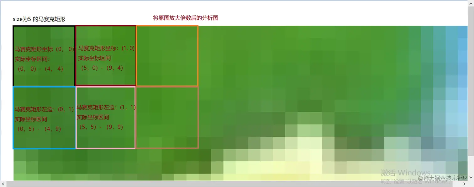 // 循环每一个马赛克矩形 将整个马赛克矩形中的像素点信息统一调成随机抽取的那个(2中的)