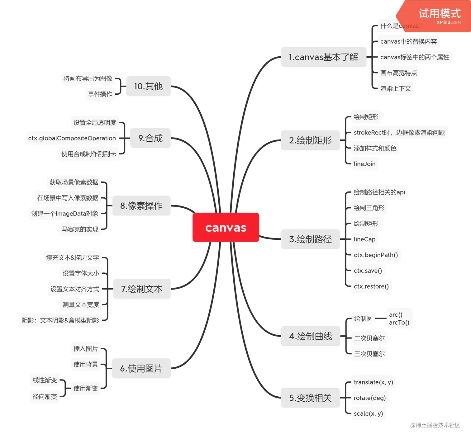 HTML中的元素canvas只支持一种原生(调用一个api)的图形绘制:矩形;所有其他的图形的绘制都至少需要生成一条路径。
