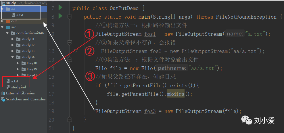 根据文件路径输出文件,“a.txt”是一个相对路径,所以是输出在当前项目下。