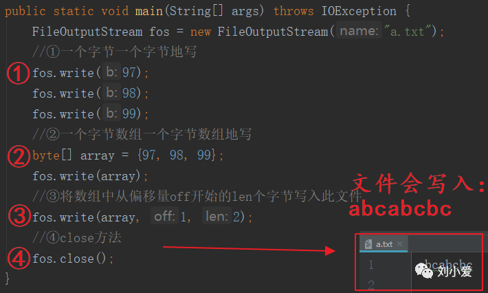 也就是说写入文件的数组,是从b数组中off索引位开始,2个长度。