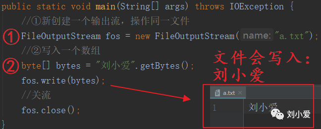 我们新创建一个输出流,操作同一个文件,写入一个数组,会将文件中的内容覆盖掉。